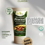 Renovação Celular Eficaz: As partículas esfoliantes naturais (sejam as sementes do próprio Pracaxi ou de outro ingrediente amazônico como açaí, semente de maracujá, etc., se forem usadas) removem delicadamente as células mortas e impurezas, desobstruindo os poros e estimulando a renovação da superfície da pele.